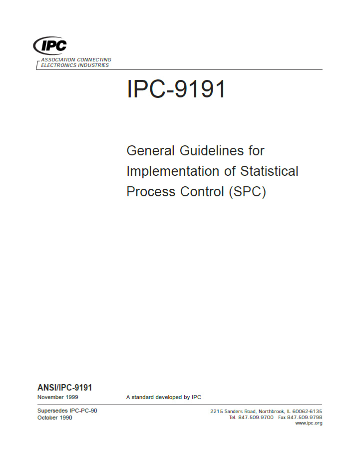IPC-9191 reflects the principals of statistical process control (SPC) represented by ISO/DIS 11462-1, Guidelines for Implementation of Statistical Process Control (SPC) -- Part 1: Elements of SPC. This document outlines the SPC philosophy, implementation strategies, tools, and techniques used for relating process control and capability to final product requirements. Supersedes IPC-PC-90.