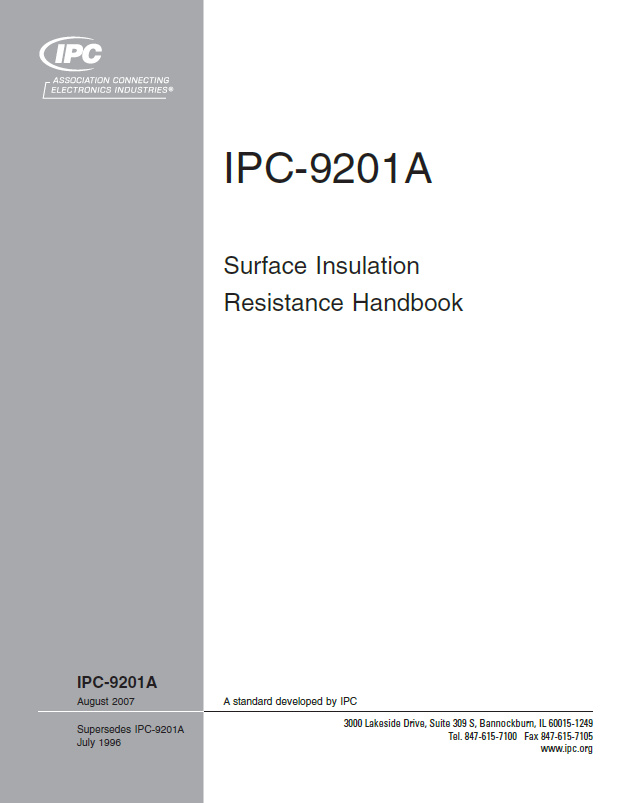 Surface Insulation Resistance (SIR) testing is a tool used not only for characterization testing of production processes such as solder masks, soldering flux, and conformal coatings, but also for examining the electrochemical reactions at each stage of the electronic assembly production process. This handbook covers the terminology, theories, test procedures and test vehicles of SIR testing, including temperature-humidity (TH) and temperature-humidity-bias (THB). Discussions on failure modes and troubleshooting are also included. Revision A provides significant expansion on the discussion of available industry test vehicles for SIR as well as test chamber setup. 86 pages. Released August 2007.