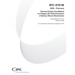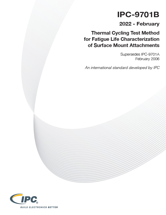 The IPC-9701B standard establishes a thermal cycling test method to characterize the fatigue lifetimes of surface mount solder attachments of electronic assemblies. The surface mount devices may be solder-attached to rigid, flexible or rigid-flex printed boards. The characterization results can be used to predict the field lifetime of solder attachments for the use environments and conditions of electronic assemblies.