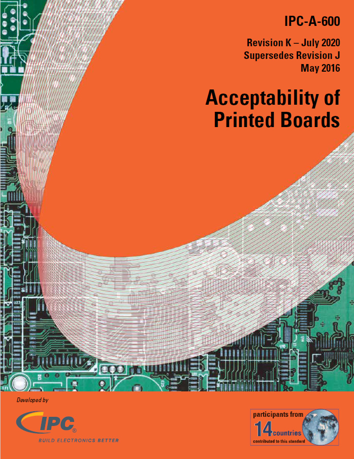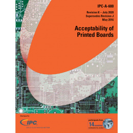 The definitive illustrated guide to printed board acceptability! This four-color document provides photographs and illustrations of the target, acceptable and nonconforming conditions that are either internally or externally observable on bare printed boards. Make sure your operators, inspectors, and engineers have the most current industry consensus information. With 120 new or revised photographs and illustrations, revision K provides new coverage on topics such as microvia contact dimensions, plating, voiding and fill, along with updated and expanded coverage for dielectric removal (etchback, smear and wicking), plating folds, surface plating for edge connectors, SMT and BGA pads, marking, hole registration, delamination, cap plating, via fill and flexible circuits. The document synchronizes to the acceptability requirements expressed in IPC-6012D and IPC-6013C. Supersedes IPC-A-600J.