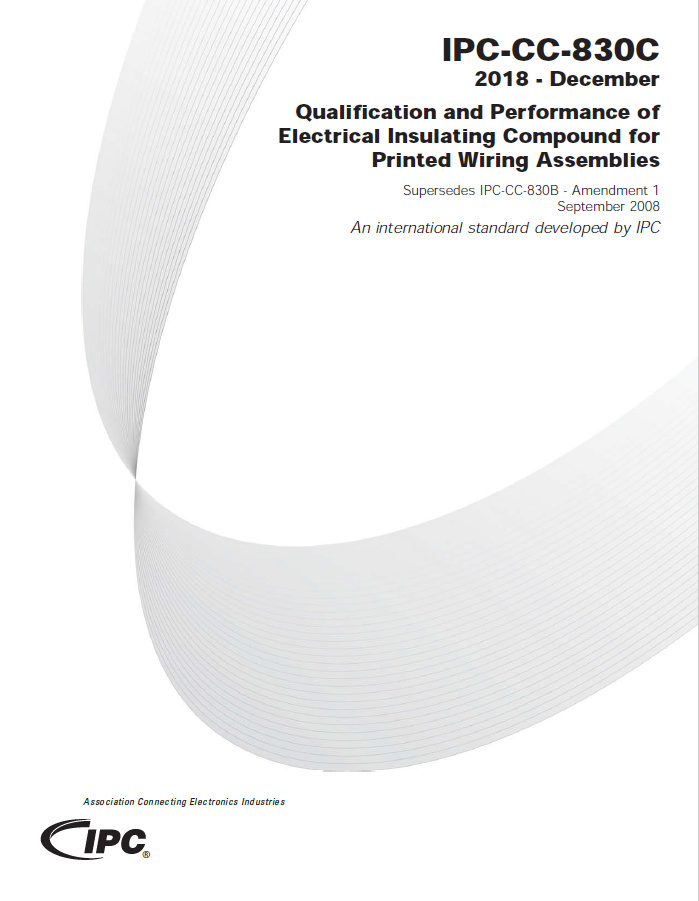 The IPC-CC-830C standard establishes qualification and conformance requirements for electrical insulating compounds (conformal coatings). It has been designed and constructed with the intent of obtaining maximum confidence in the materials with minimum test redundancy. The IPC-CC-830C standard covers: