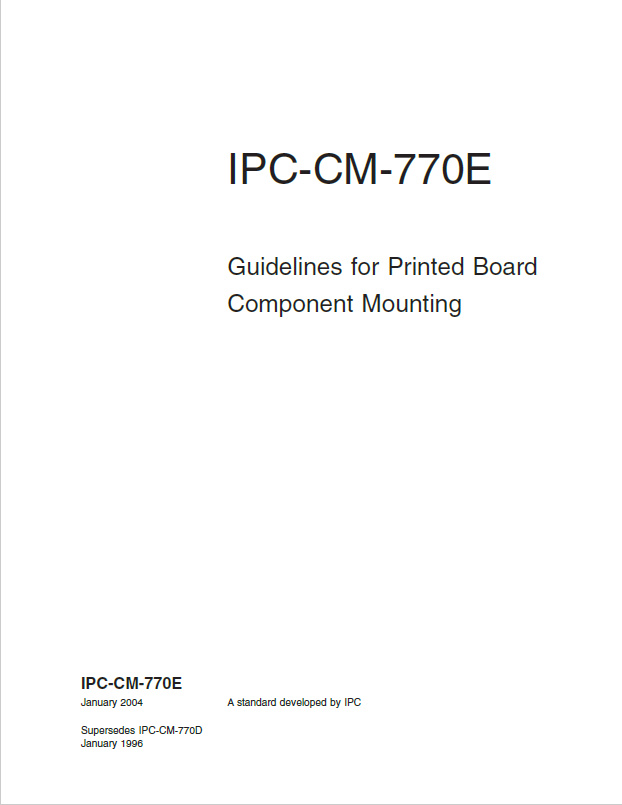 This revision provides effective guidelines in the preparation and attachment of components for printed circuit board assembly and reviews pertinent design criteria, impacts and issues. It contains techniques for assembly (both manual and machines including SMT, BGA and flip chip) and consideration of, and impact upon, subsequent soldering, cleaning, and coating processes. 150 pages. Revised January 2004.