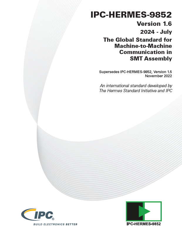 The IPC-Hermes-9852 standard provides a state-of-the-art communication protocol for machine-to-machine communication for surface-mount technology. Used with IPC-2591, Connected Factory Exchange, IPC-HERMES-9852 can assist any electronics manufacturer, large or small, to align their companies with smart manufacturing and Industry 4.0. Version 1.6 includes updates to SendBoardInfo and capabilities for Hermes-enabled equipment to be queried on its Hermes capabilities.