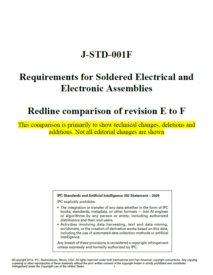 | Standard Number: | IPC-J-STD-001 - Revision F - Redline |