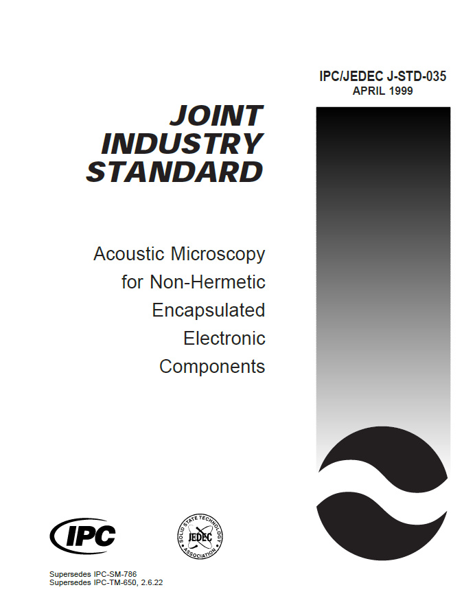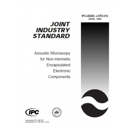 This test method defines the procedures for performing acoustic microscopy on non-hermetic encapsulated electronic components. It provides users with an acoustic microscopy process flow for detecting defects non-destructively in plastic packages while achieving reproducibility. Developed by IPC and JEDEC. 20 pages. Released April 1999.