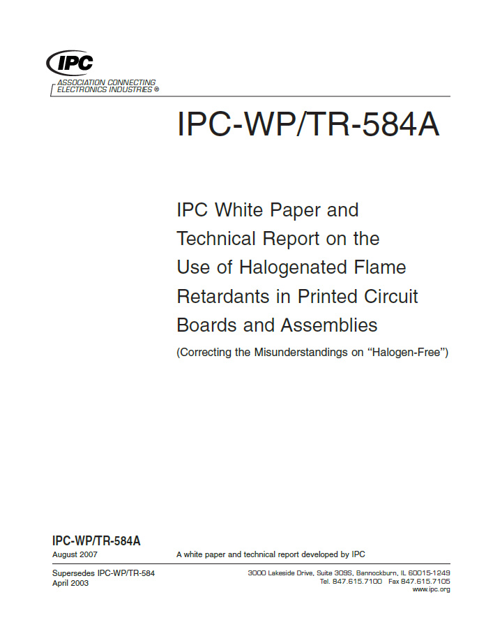 IPC White Paper and Technical Report on the Use of Halogenated Flame Retardants in Printed Circuit Boards and Assemblies (Correcting the Misunderstandings on "Halogen-Free")