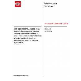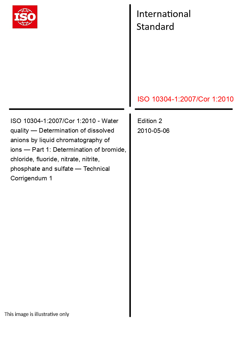 ISO 10304-1:2007/Cor 1:2010 - Water quality — Determination of dissolved anions by liquid chromatography of ions — Part 1: Determination of bromide, chloride, fluoride, nitrate, nitrite, phosphate and sulfate — Technical Corrigendum 1