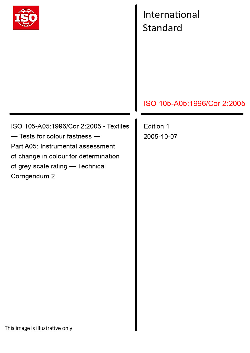 ISO 105-A05:1996/Cor 2:2005 - Textiles — Tests for colour fastness — Part A05: Instrumental assessment of change in colour for determination of grey scale rating — Technical Corrigendum 2