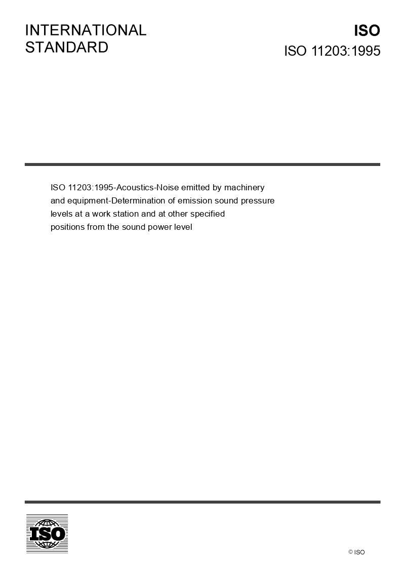 ISO 11203:1995 - Acoustics — Noise emitted by machinery and equipment — Determination of emission sound pressure levels at a work station and at other specified positions from the sound power level
