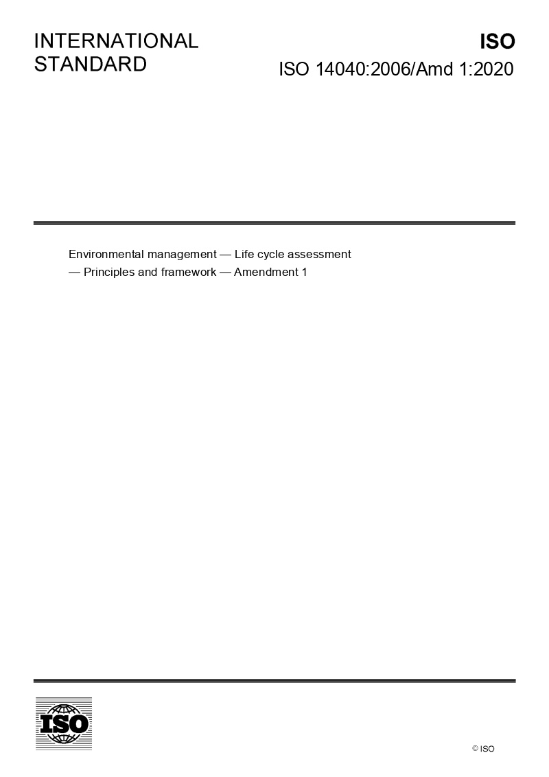 ISO 14040:2006/Amd 1:2020-Environmental management — Life cycle assessment — Principles and framework — Amendment 1