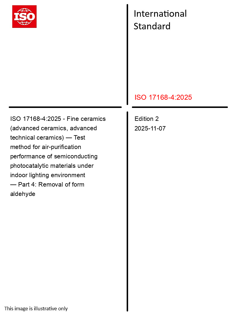 ISO 17168-4:2025 - Fine ceramics (advanced ceramics, advanced technical ceramics) — Test method for air-purification performance of semiconducting photocatalytic materials under indoor lighting environment — Part 4: Removal of formaldehyde