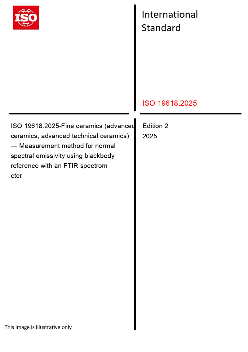 ISO 19618:2025-Fine ceramics (advanced ceramics, advanced technical ceramics) — Measurement method for normal spectral emissivity using blackbody reference with an FTIR spectrometer