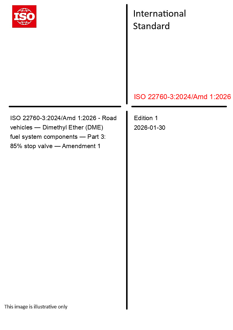 ISO 22760-3:2024/Amd 1:2026 - Road vehicles — Dimethyl Ether (DME) fuel system components — Part 3: 85% stop valve — Amendment 1