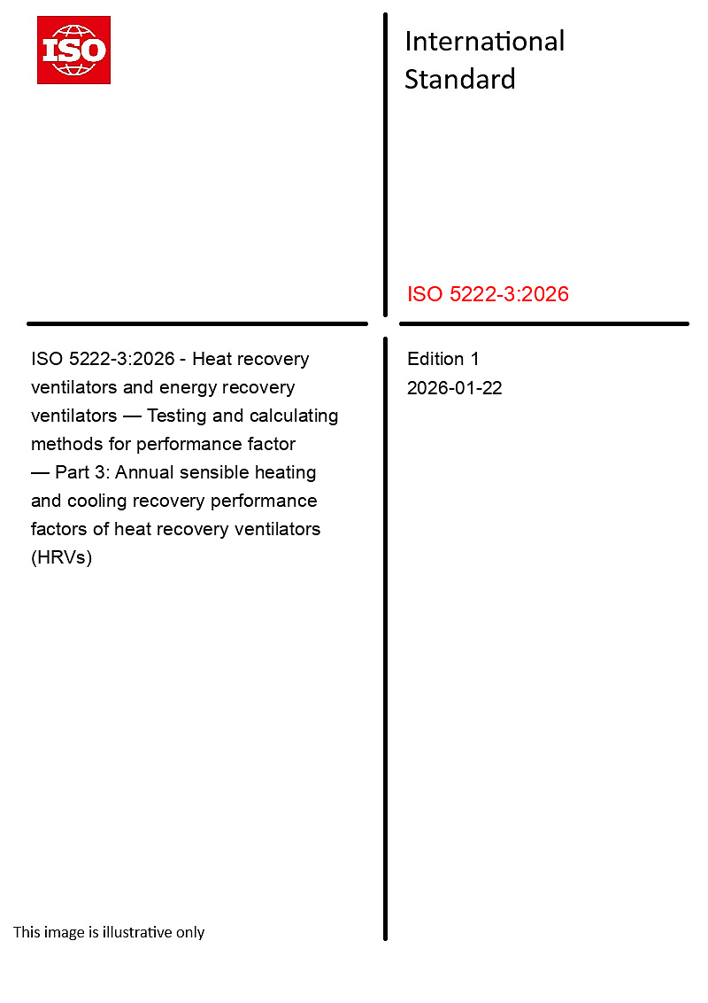ISO 5222-3:2026 - Heat recovery ventilators and energy recovery ventilators — Testing and calculating methods for performance factor — Part 3: Annual sensible heating and cooling recovery performance factors of heat recovery ventilators (HRVs)