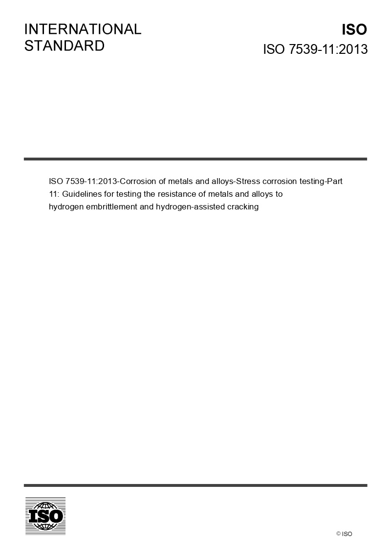 ISO 7539-11:2013-Corrosion of metals and alloys — Stress corrosion testing — Part 11: Guidelines for testing the resistance of metals and alloys to hydrogen embrittlement and hydrogen-assisted cracking