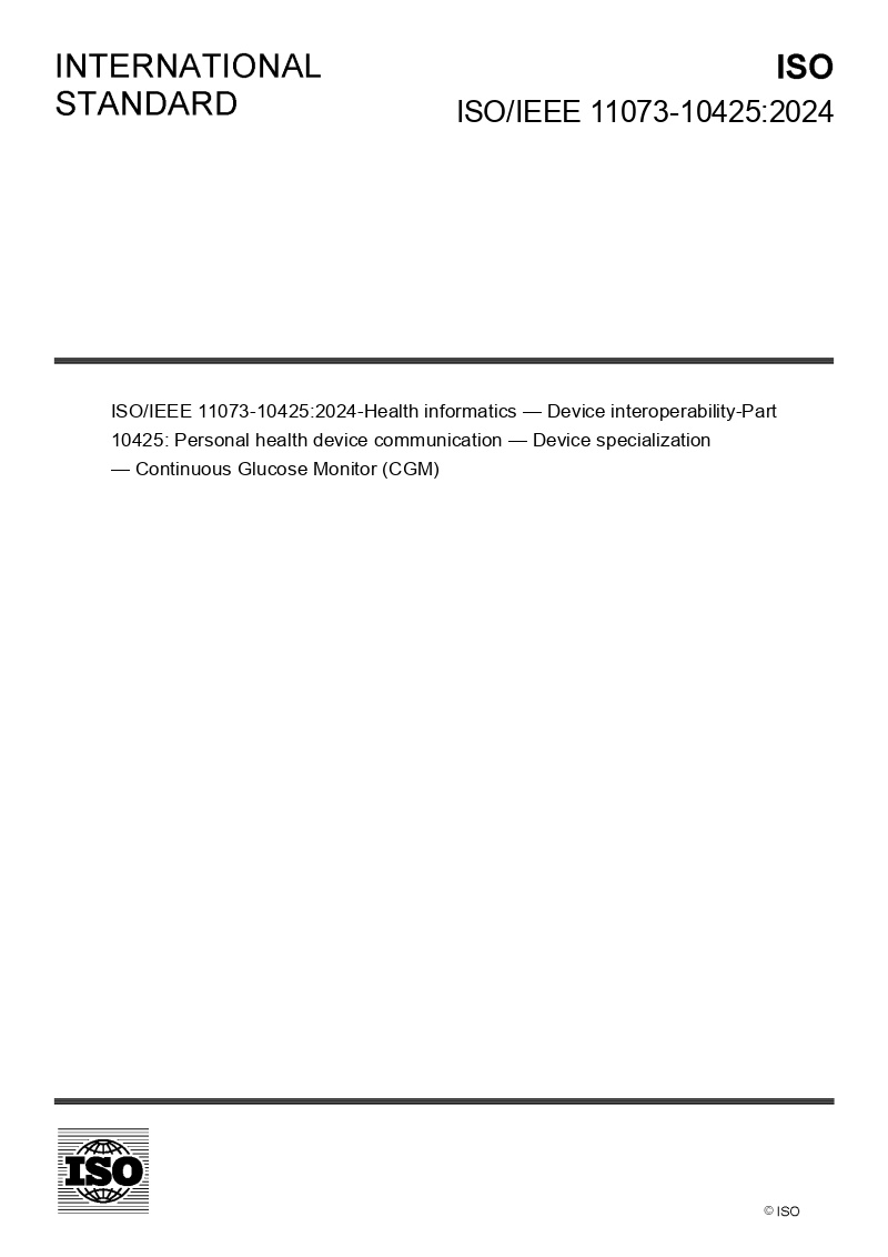 ISO/IEEE 11073-10425:2024 - Health informatics — Device interoperability — Part 10425: Personal health device communication — Device specialization — Continuous Glucose Monitor (CGM)