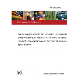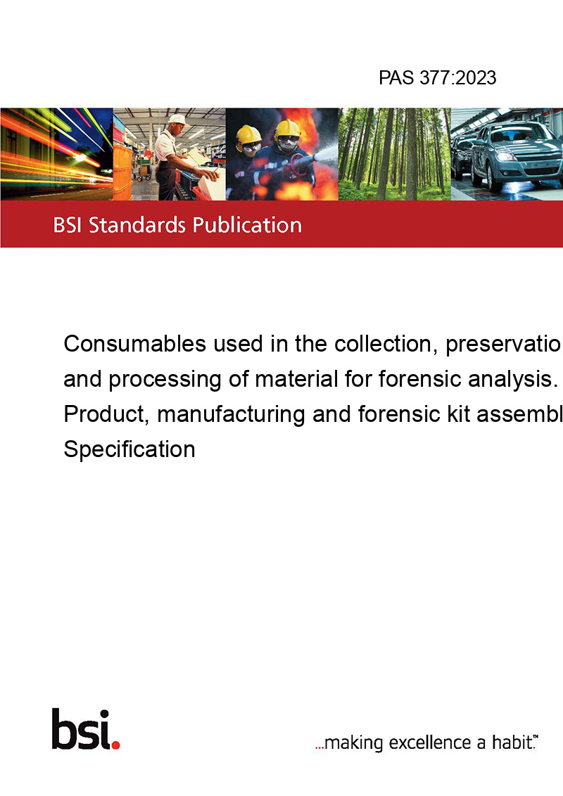 This standard PAS 377:2023 Consumables used in the collection, preservation and processing of material for forensic analysis. Product, manufacturing and forensic kit assembly. Specification is classified in these ICS categories: