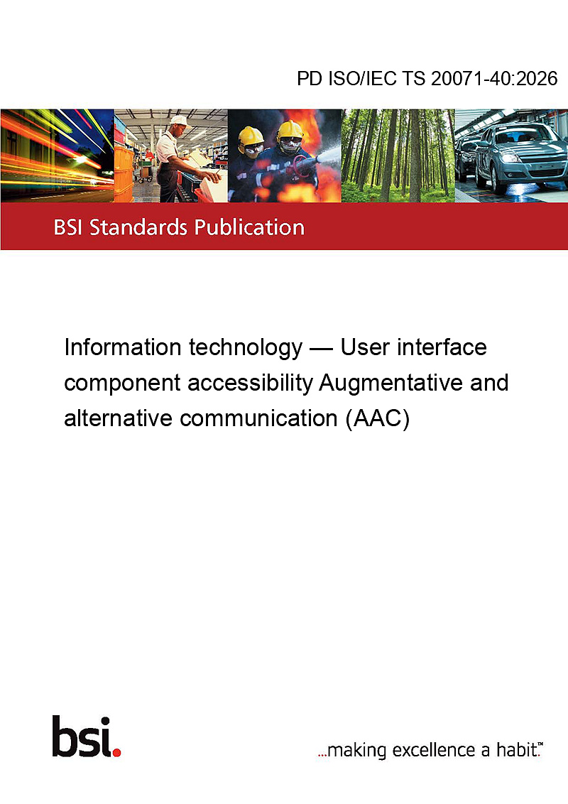 This standard PD ISO/IEC TS 20071-40:2026 Information technology — User interface component accessibility is classified in these ICS categories: