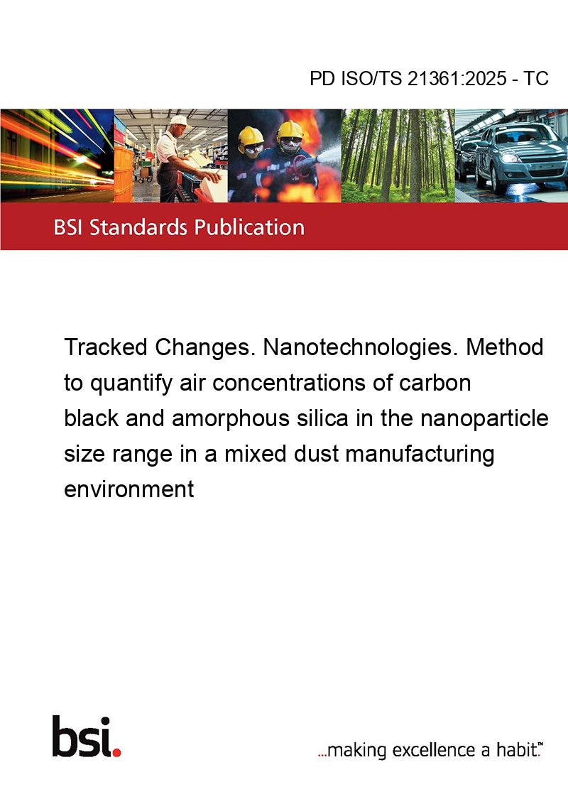 This standard PD ISO/TS 21361:2025 - TC Tracked Changes. Nanotechnologies. Method to quantify air concentrations of carbon black and amorphous silica in the nanoparticle size range in a mixed dust manufacturing environment is classified in these ICS categories: