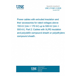 UNE 211067-2:2026 - Power cables with extruded insulation and their accessories for rated voltages above 150 kV (Um = 170 kV) up to 500 kV (Um = 550 kV). Part 2: Cables with XLPE insulation and polyolefin compound sheath or polyethylene compound sheath.
