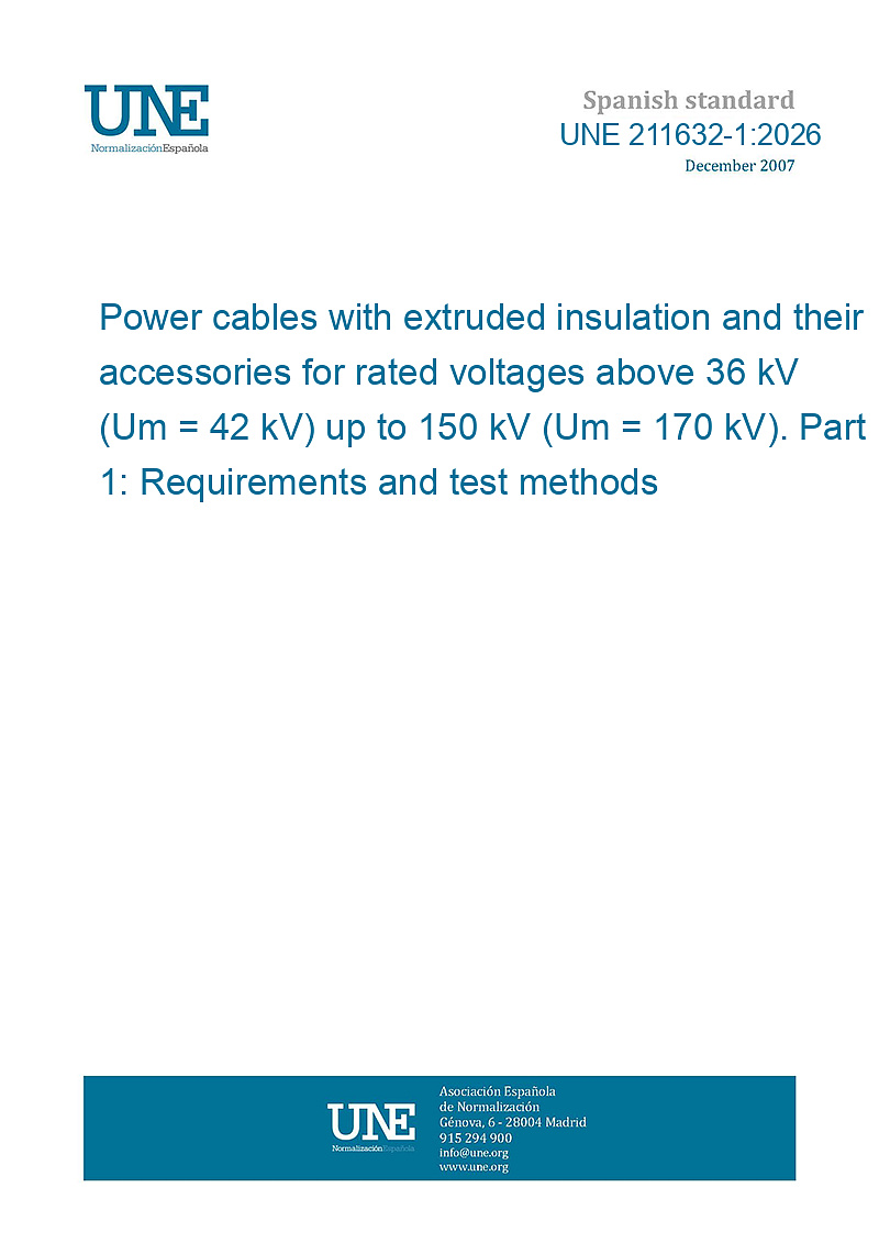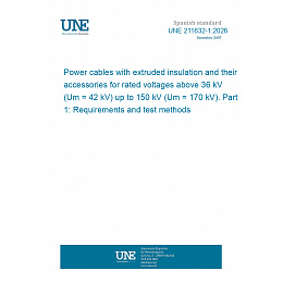 UNE 211632-1:2026 - Power cables with extruded insulation and their accessories for rated voltages above 36 kV (Um = 42 kV) up to 150 kV (Um = 170 kV). Part 1: Requirements and test methods