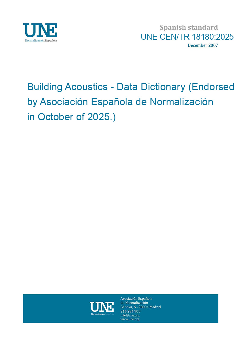This standard UNE CEN/TR 18180:2025 Building Acoustics - Data Dictionary (Endorsed by Asociación Española de Normalización in October of 2025.) is classified in these ICS categories:
