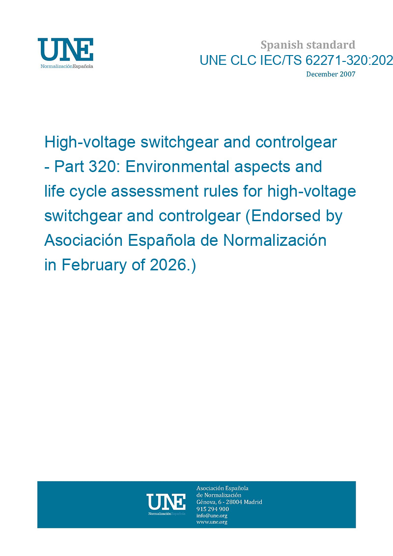 Aparamenta de alta tensión. Parte 320: Aspectos ambientales y reglas de evaluación del ciclo de vida para aparamenta de alta tensión (Ratificada por la Asociación Española de Normalización en febrero de 2026.)