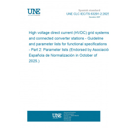 Sistemas de red de alta tensión en corriente continua (HVDC) y estaciones de convertidor conectadas. Directrices y listas de parámetros para especificaciones funcionales. Parte 2: Listas de parámetros (Ratificada por la Asociación Española de Normalización en octubre de 2025.)