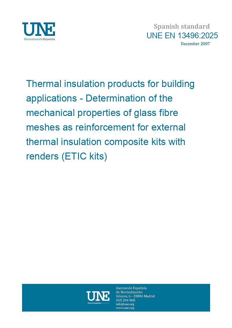 This standard UNE EN 13496:2025 Thermal insulation products for building applications - Determination of the mechanical properties of glass fibre meshes as reinforcement for external thermal insulation composite kits with renders (ETIC kits) is classified in these ICS categories: