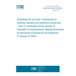 Explosivos para usos civiles. Explosivos para voladuras, multiplicadores y sustancias explosivas. Parte 14: Verificación de la velocidad de detonación de explosivos para voladuras (Ratificada por la Asociación Española de Normalización en enero de 2026.)