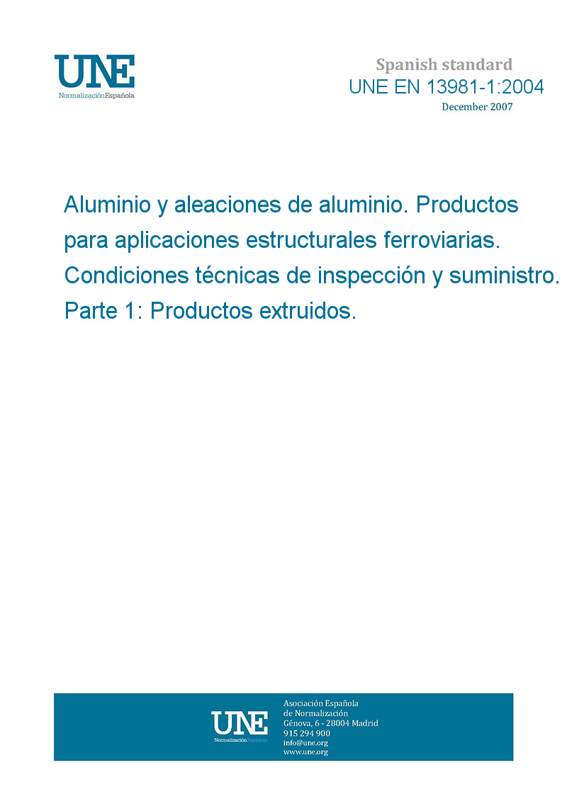Aluminio y aleaciones de aluminio. Productos para aplicaciones estructurales ferroviarias. Condiciones técnicas de inspección y suministro. Parte 1: Productos extruidos.