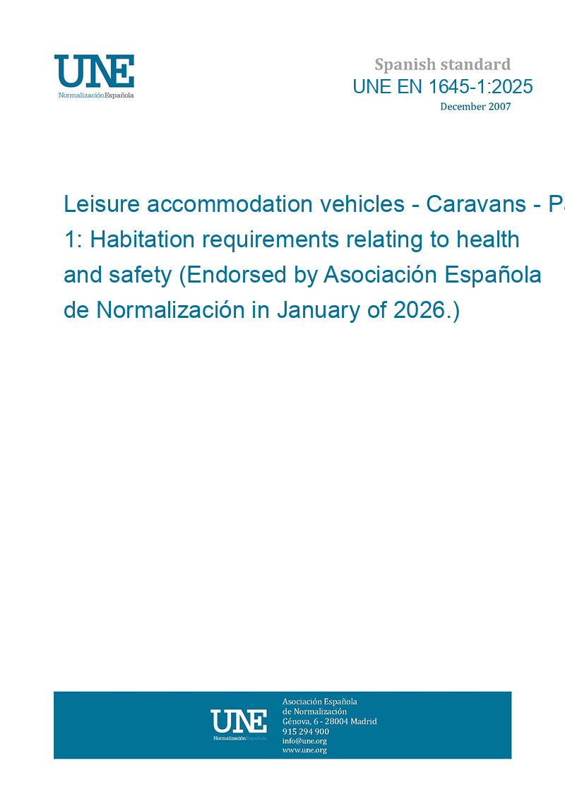 Vehículos habitables de recreo. Caravanas. Parte 1: Requisitos de habitabilidad relativos a la salud y a la seguridad. (Ratificada por la Asociación Española de Normalización en enero de 2026.)