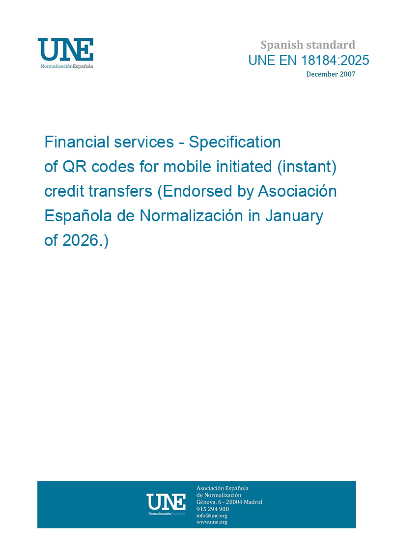 Financial services - Specification of QR codes for mobile initiated (instant) credit transfers (Endorsed by Asociación Española de Normalización in January of 2026.)