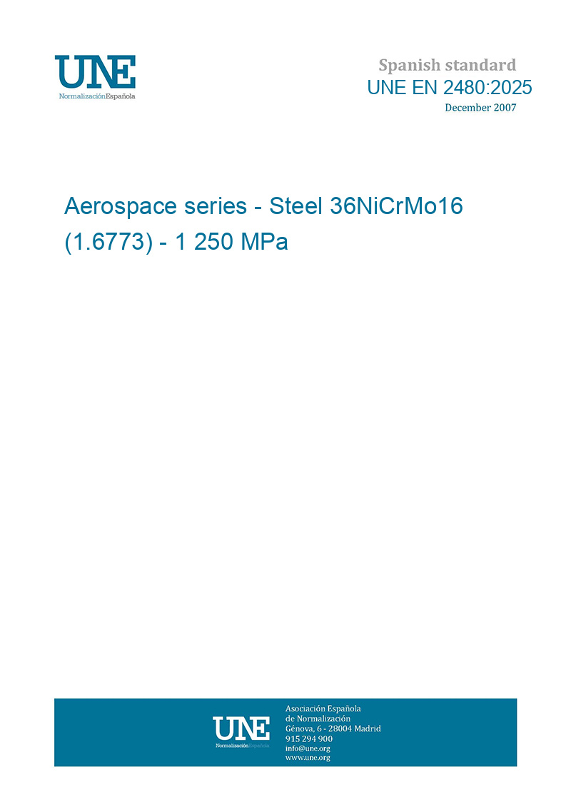 Material aeroespacial. Acero FE-PL2108 (36NiCrMo16) - 1 250 MPa <= Rm <= 1 400 MPa. Barras. De <= 75 mm (Ratificada por la Asociación Española de Normalización en enero de 2026.)