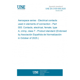 Aerospace series - Electrical contacts used in elements of connection - Part 005: Contacts, electrical, female, type A, crimp, class T - Product standard (Endorsed by Asociación Española de Normalización in October of 2025.)