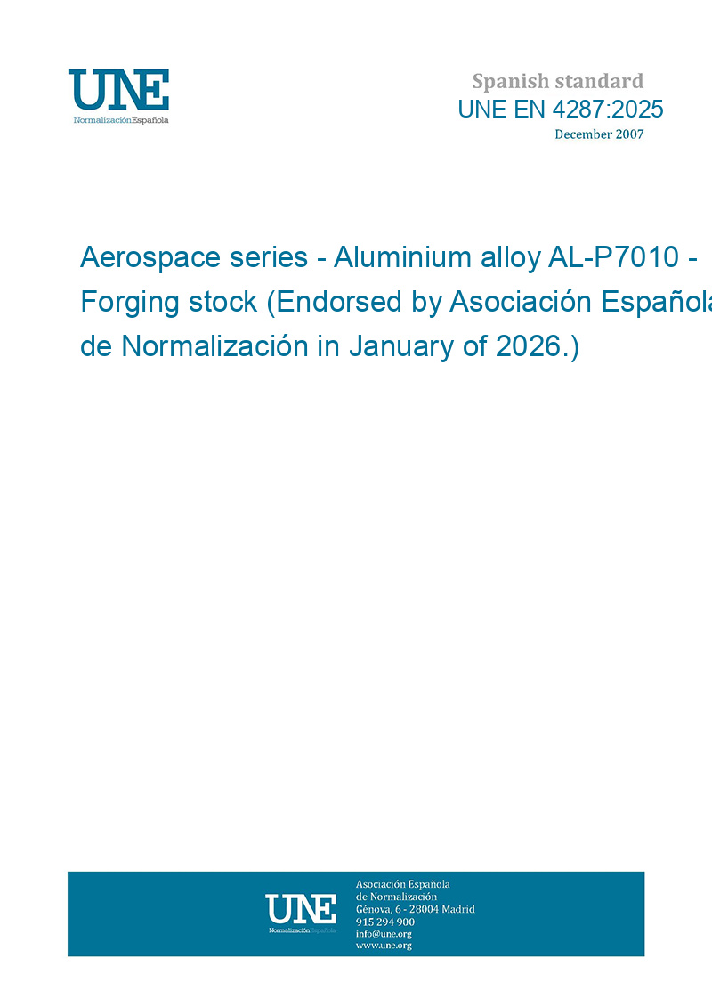 This standard UNE EN 4287:2025 Aerospace series - Aluminium alloy AL-P7010 - Forging stock (Endorsed by Asociación Española de Normalización in January of 2026.) is classified in these ICS categories: