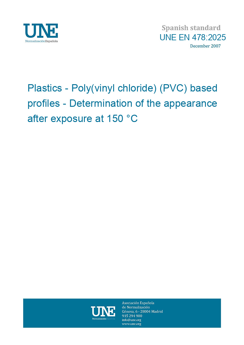 This standard UNE EN 478:2025 Plastics - Poly(vinyl chloride) (PVC) based profiles - Determination of the appearance after exposure at 150 °C is classified in these ICS categories: