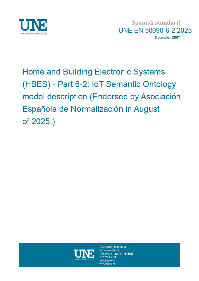 Sistemas electrónicos para viviendas y edificios (HBES). Parte 6-2: Descripción del modelo de ontología semántica para internet de los objetos. (Ratificada por la Asociación Española de Normalización en agosto de 2025.)