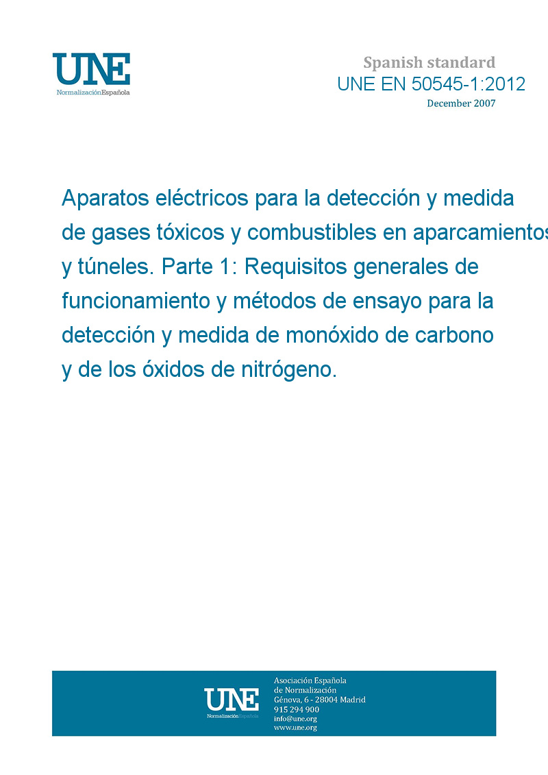 Aparatos eléctricos para la detección y medida de gases tóxicos y combustibles en aparcamientos y túneles. Parte 1: Requisitos generales de funcionamiento y métodos de ensayo para la detección y medida de monóxido de carbono y de los óxidos de nitrógeno.