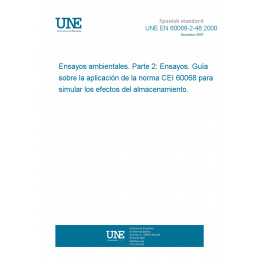 This standard UNE EN 60068-2-48:2000 Environmental testing. Part 2: Tests. Guidance on the application of the tests of IEC 60068 to simulate the effects of storage is classified in these ICS categories: