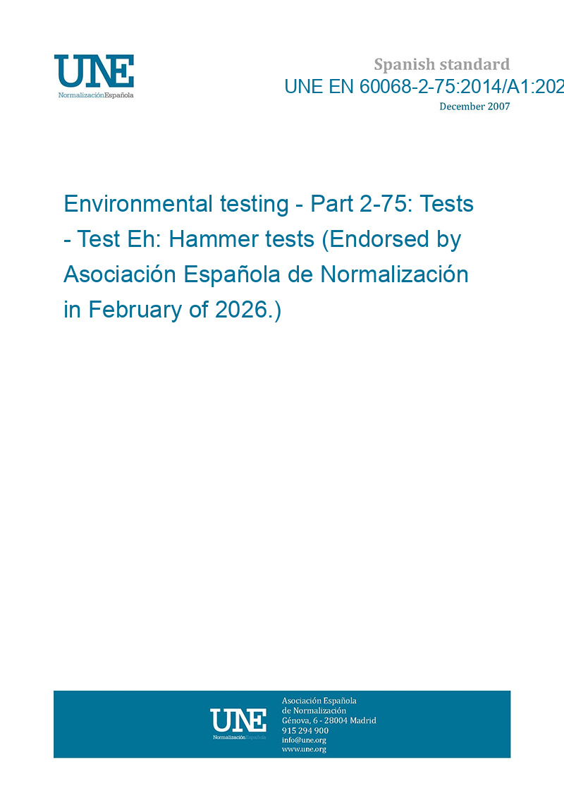 Ensayos ambientales. Parte 2: Ensayos. Ensayo Eh: Ensayos de martillos. Modificación 1 (Ratificada por la Asociación Española de Normalización en febrero de 2026.)