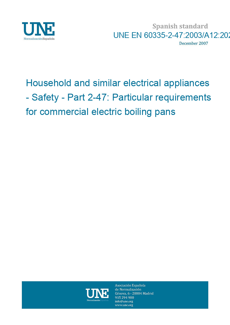 Aparatos electrodomésticos y análogos. Seguridad. Parte 2-47: Requisitos particulares para marmitas eléctricas de uso colectivo.