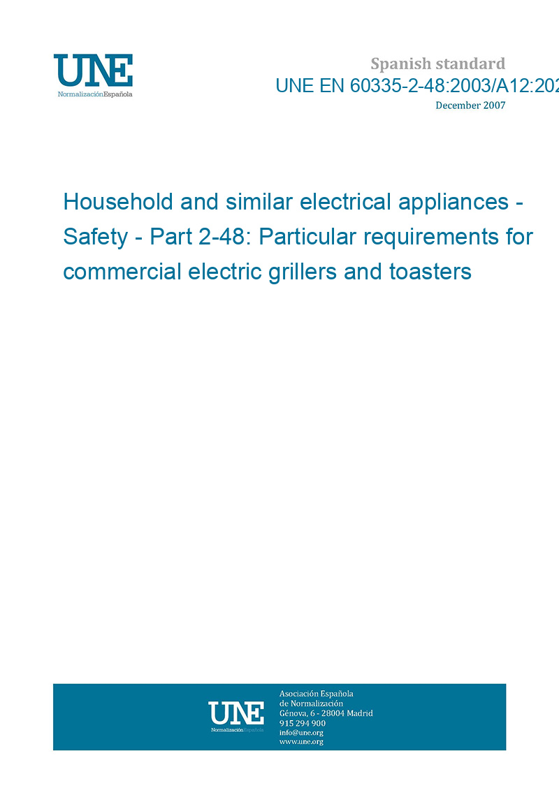 Aparatos electrodomésticos y análogos. Seguridad. Parte 2-48: Requisitos particulares para parrillas y tostadores de pan eléctricos de uso colectivo.