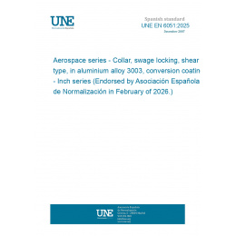 This standard UNE EN 6051:2025 Aerospace series - Collar, swage locking, shear type, in aluminium alloy 3003, conversion coating - Inch series (Endorsed by Asociación Española de Normalización in February of 2026.) is classified in these ICS categories: