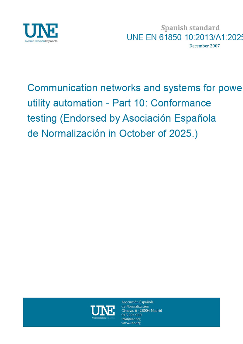 Communication networks and systems for power utility automation - Part 10: Conformance testing (Endorsed by Asociación Española de Normalización in October of 2025.)
