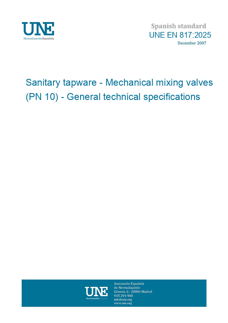 This standard UNE EN 817:2025 Sanitary tapware - Mechanical mixing valves (PN 10) - General technical specifications is classified in these ICS categories: