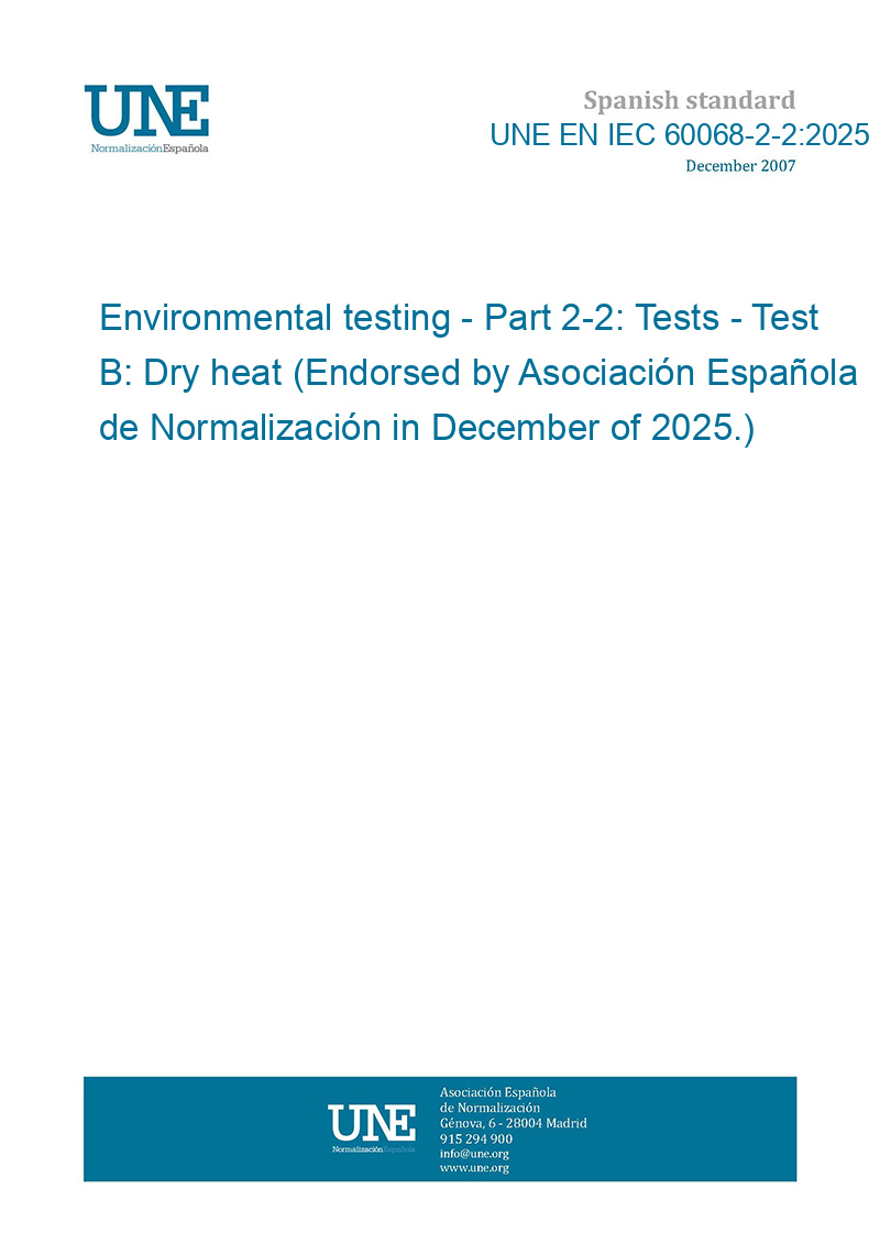 Ensayos ambientales. Parte 2-2: Ensayos. Ensayo B: Calor seco. (Ratificada por la Asociación Española de Normalización en diciembre de 2025.)