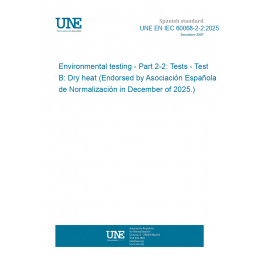 This standard UNE EN IEC 60068-2-2:2025 Environmental testing - Part 2-2: Tests - Test B: Dry heat (Endorsed by Asociación Española de Normalización in December of 2025.) is classified in these ICS categories: