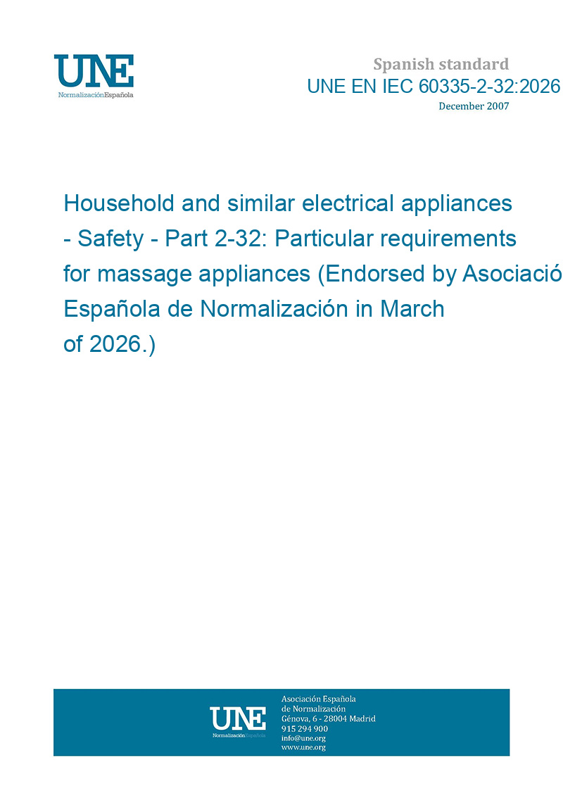 Aparatos electrodomésticos y análogos. Seguridad. Parte 2-32: Requisitos particulares para aparatos de masajes. (Ratificada por la Asociación Española de Normalización en marzo de 2026.)