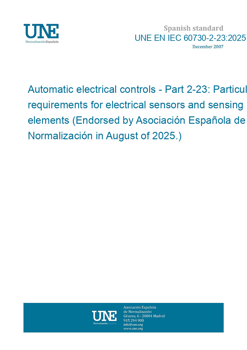 Dispositivos de control eléctrico automático para uso doméstico y análogo. Parte 2-23: Requisitos particulares para los sensores eléctricos y los elementos sensores (Ratificada por la Asociación Española de Normalización en agosto de 2025.)